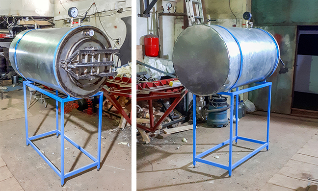Автоклав наша компания выполнила для мебельного производства. При определенной обработке древесины горячим паром при повышенном давлении свойства меняются, позволяя придавать нужную форму заготовкам деталей мебели.